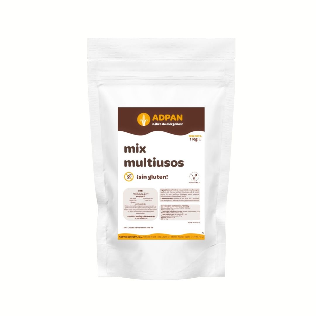 Además, el Mix multiusos sin gluten de Adpan es perfecto para personas con intolerancias alimentarias. Por ejemplo, es completamente libre de gluten, leche, huevo, soja y frutos secos. De hecho, su fórmula especial garantiza una textura y sabor excepcionales en cada receta, desde panes esponjosos hasta postres irresistibles. Por lo tanto, te invitamos a explorar nuestras recetas Adpan y descubrir la amplia variedad de platos que puedes preparar con nuestro mix multiusos.